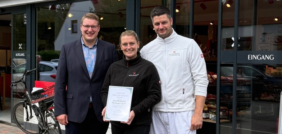 Im Gespräch mit Bürgermeister Wärner ging es unter anderem um aktuelle Entwicklungen in der Branche und die Herausforderungen des Handwerks. Deutlich wurde, wie wichtig engagierte Familienbetriebe wie die Fleischerei Mühlenbeck für die wirtschaftliche Stärke und Lebensqualität in der Region sind.