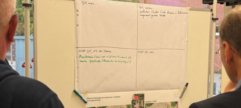 Die anwesenden Eltern sowie Vertreterinnen und Vertreter aus Politik, Vereinen und Institutionen hatten die Möglichkeit, Fragen zu stellen und ihre Anmerkungen, Wünsche oder Kritik auf Stellwänden festzuhalten, damit diese in den weiteren Planungen berücksichtigt werden können.