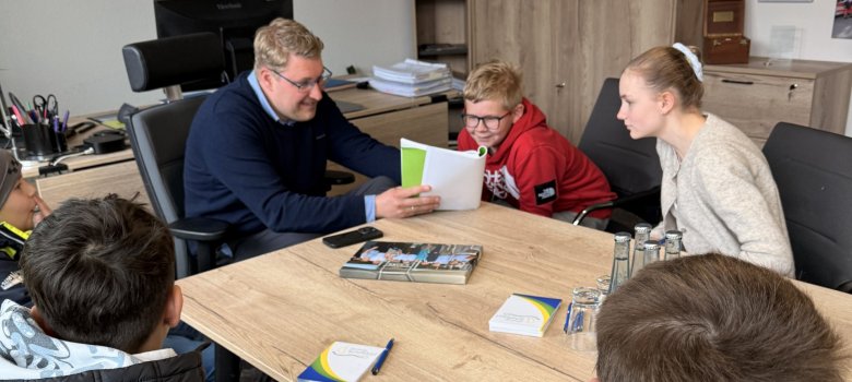 Ein besonderes Highlight war der Austausch mit dem Bürgermeister. In einem persönlichen Gespräch erhielten die Schülerinnen und Schüler Antworten auf Fragen rund um seine Tätigkeit, die Aufgaben einer Gemeinde sowie die Bedeutung und den Aufbau des kommunalen Haushaltsplans.